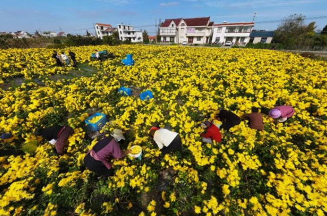 大豫镇一门闸村全年光照充足,雨量充沛,土壤有机质含量高,是种植金丝皇菊的黄金宝地。村集体成立了南通东湖农业科技发展有限公司,并注册商标“犇菊”。为解决花期短、采收急、烘干时间长等问题,公司投资135万元,改建金丝皇菊烘干车间300平方米,增设8台烘干设备,致力于金丝皇菊特色产业发展。