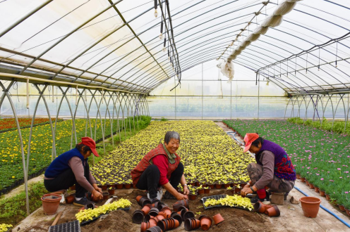 “原本从东台运盆景过来,来回要一天,现在一个小时左右就能解决问题,不仅运输成本减少了一大半,如皋盆景的品牌效应也让我们收获了更好的经济收益。”王爱东种植的品种涵盖彩虹欧石竹、夏堇等100余种国外种苗优良、市场热销的产品,主要直供苏沪及如皋本地大型花卉批发市场,年产值可达300—500万。“大棚工作人手不够,我们在村里找了20多名村民来帮忙,让老乡们在家门口实现就业增收”,王爱东直言,自己虽不是本土人,但也想反哺这片助他致富的土地,“除了用工发工资,如果有村民愿意尝试种养如皋特色小微盆景,我也一直乐意相助!”,既是客商,也是致富带头人,王爱东表示,他始终愿意扎根申徐,贡献自己的一份力量,帮助更多的村民鼓起“钱袋子”。