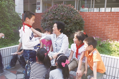 “之前我就发现街道有很多外来务工人员子女,他们基本都被‘放养’,很多孩子学习跟不上或者是环境不适应。”蔡松英当了一辈子教师,深知“扣好人生第一粒扣子”重要性。2010年,蔡松英带领“知心奶奶”们开设了“七彩周末课堂”,利用周末将这些外来务工人员子女聚集在一起,由“知心奶奶”群体和南通大学教育科学学院研究生志愿者轮流为孩子们提供课业辅导、兴趣培养、心理干预等服务。