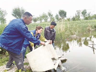 本网讯 (记者严春花)“能为母亲河贡献一份力量,很光荣。”21日,装运鱼苗的运输车到达指定投放点,在工作人员引领下,通州区兴东街道土山村的网格员与志愿者们一同来到河边将各类鱼苗放入河中,尾尾鱼苗欢快跳入河中,激起阵阵水花。