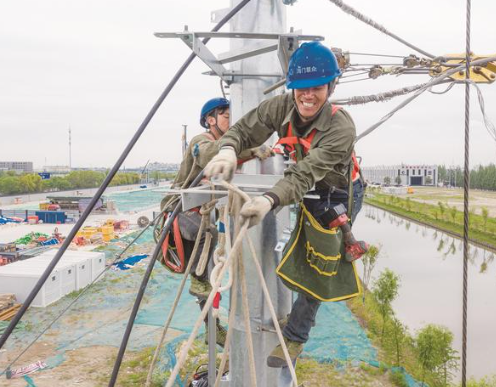 昨日,国网南通市海门区供电公司(联众公司)施工人员在海太过江通道盾构施工工地外围,进行10千伏江心沙线路改迁作业,避让过江通道正面空域改为地下电缆穿越,同时为盾构沉井开挖提供临时电源。