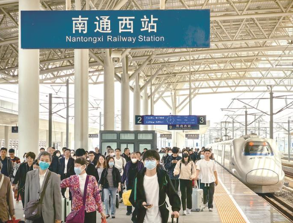 昨天在南通西站拍摄的旅客出行画面。截至当天18时,南通西站发送旅客11453人、到达8562人;截至15时,南通站发送旅客1.6万人。记者许丛军