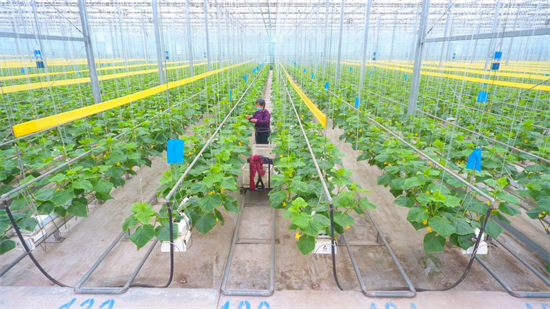 “黄瓜根系浅,吸水吸肥能力弱,土壤板结,土壤温度过高,这些因素都会造成根系不生长。这种立体水培种植模式,利用智能化循环系统,能源源不断地为蔬菜供应养分,既生态环保,又节约成本。”刘志文介绍,相比传统的种植模式,水培种植模式省略了翻地、整地、施底肥等环节,可实现全天候不间断播种移栽和收获,每年可种植3茬,产量明显优于土培种植。