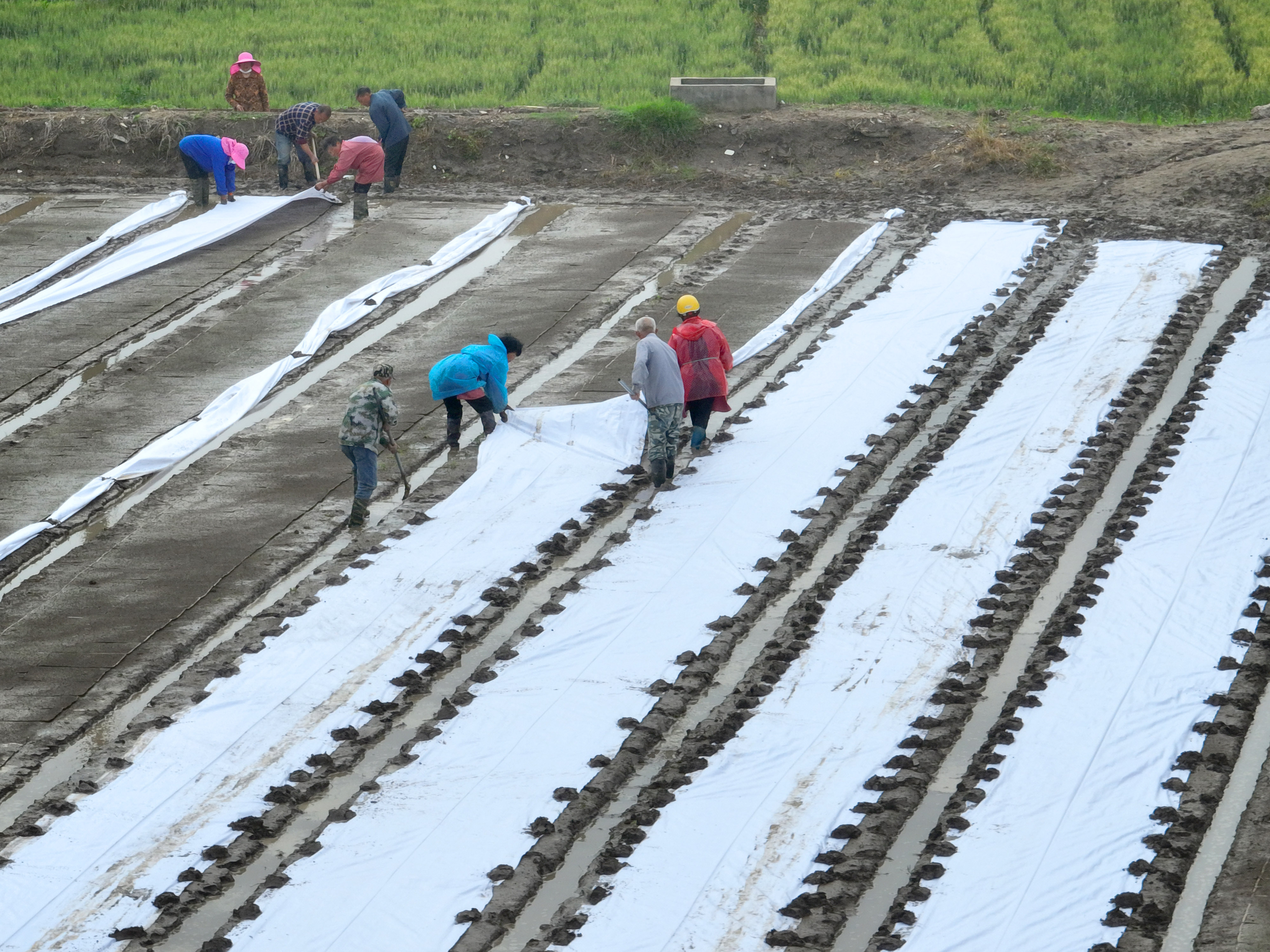 昨日,在崇川区幸福街道辖区现代农业产业集中区,农民们在育秧田中覆土、覆膜。立夏时节,农民们抢抓农时,田间地头一派繁忙景象。崇川区现代农业产业集中区是我市优质粮食主产区之一,也是省内单体最大的“万顷良田”建设项目区、乡村振兴的示范高地。记者 许丛军摄