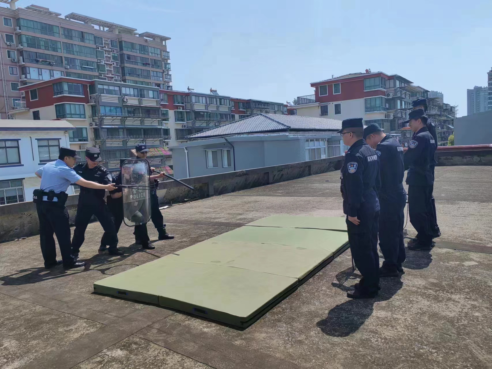 5月9日,启东市公安局汇龙镇中心派出所组织特辅警开展反恐防暴处突处置实战训练。训练中,民警结合辖区实际特点,采用三人队形的小单元作战方式,运用警棍、钢叉及防暴盾等器械进行有针对性的反恐防暴队形与近身实战的防暴对抗。训练内容包括器械使用、防暴队形、防卫控制以及对突发性暴恐事件的现场处置。