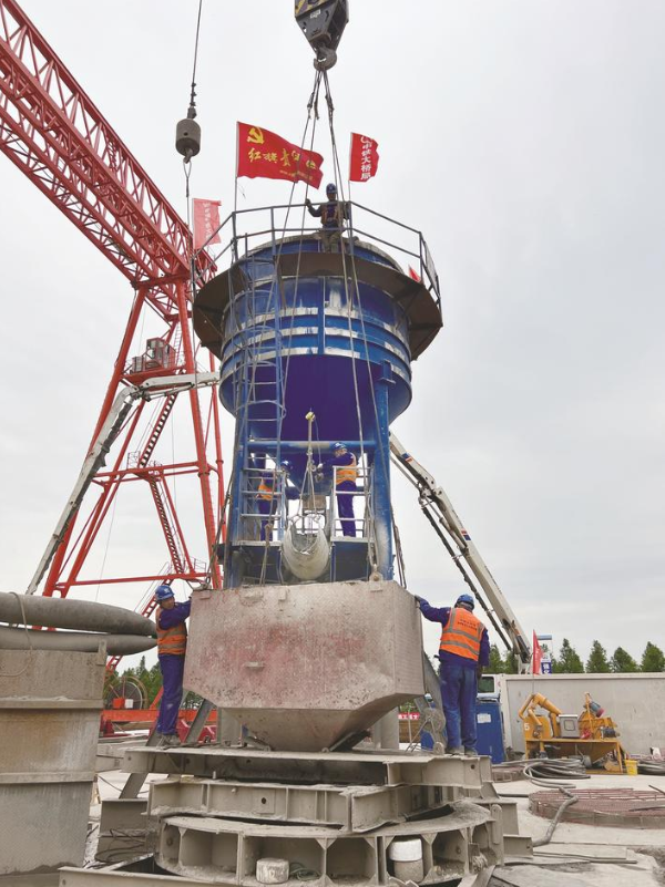 在主塔桩基的建设期间,为确保工程质量,中铁大桥局项目团队研究并开发了桩端及桩侧智能化后压浆技术,采用5G技术控制压浆量、配合比、流速、压力等指标参数,并对压浆量和压浆压力进行实时监测,对压浆过程实现网络化、数字化和可视化监控,用高新技术助力现场生产。
