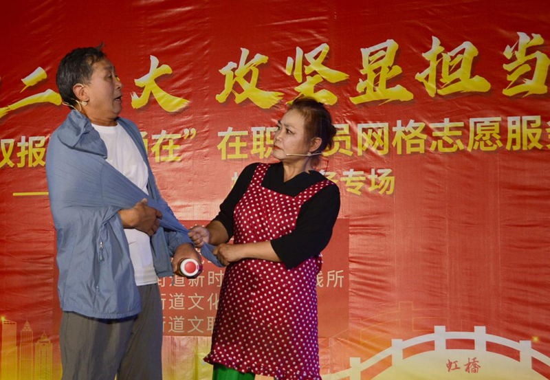 除了形式新颖,内容也必须过硬。虹桥“七彩虹”艺术团团长崔秀玲在和社区民警的交流过程中了解到,有的不法分子利用保健培训和产品推介、投资理财高额回报、直播陪护等手段设置陷阱、诱导消费,给老年人造成了严重的经济损失。以此为题材,艺术团根据受骗的真实案例创作出反诈小品《老友“发财记”》成了各场演出的压轴节目,演员们以南通方言演绎受骗经历,让观众在欢声笑语中学到了防骗知识。
