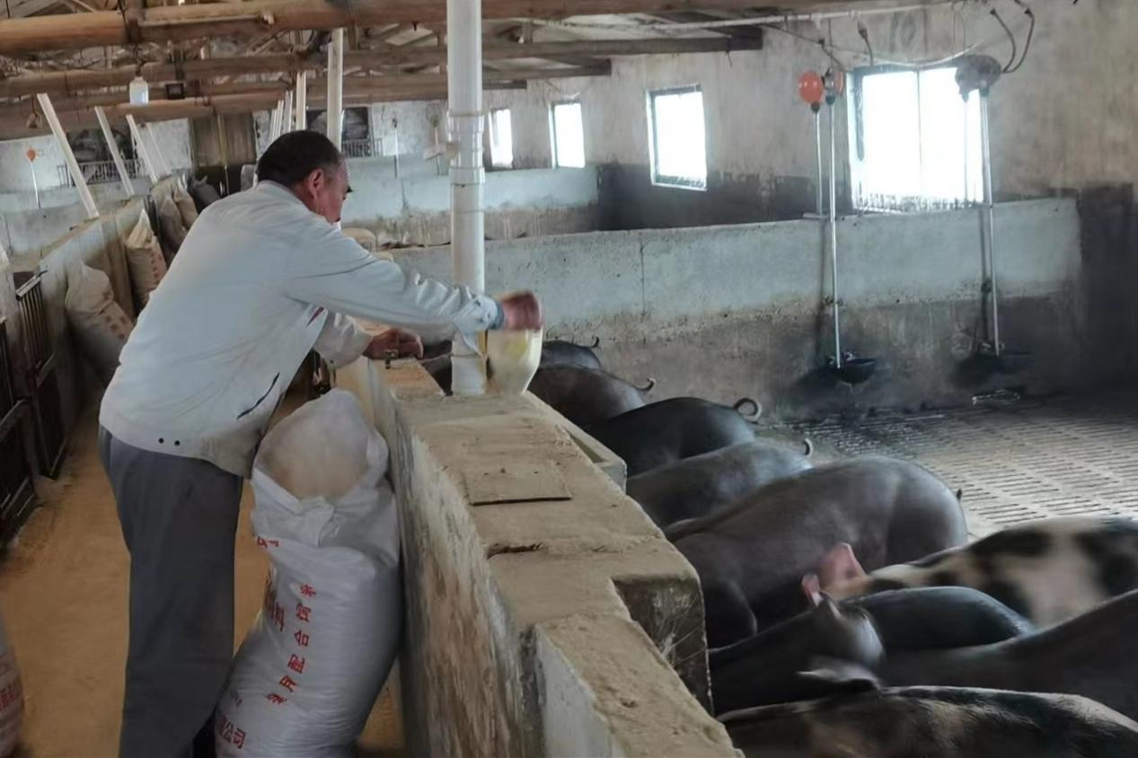 在养殖场附近,张国华承包了几十亩地,通过猪粪回田的方式,种植空心菜、鱼腥草等蔬菜,这些蔬菜成为饲养黑猪的上好口粮。养殖场内,养殖料塔自动喂养系统正在将加工好的饲料通过管道运输送至猪舍。