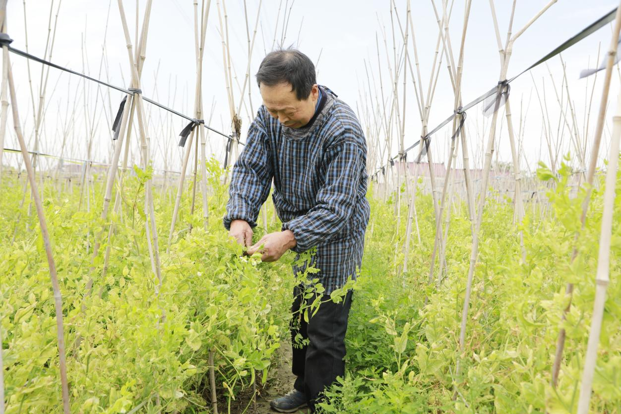 2016年,薛永炎承包了508亩土地种植黑塌菜、香堂芋、青玉米、荷兰豆等特色产业,目前正是荷兰豆的采摘期。“荷兰豆种植面积有100亩,年产值200多万元。”薛永炎介绍道。