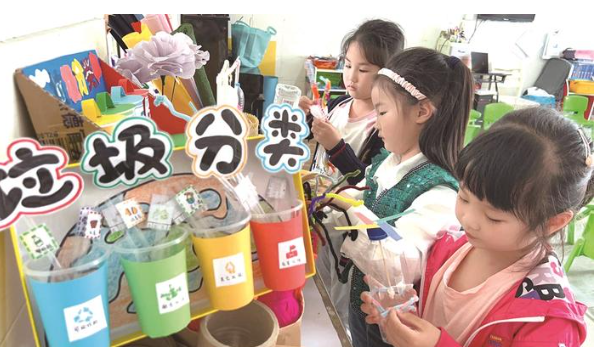 昨天,虹桥第三幼儿园的老师和孩子们围绕垃圾分类热烈互动。上周五,杭州益趣科技有限公司的志愿者在虹桥三园讲解垃圾分类的知识后,孩子们和父母一起做出了手工艺品装扮校园,趣味横生。通讯员杨千一 记者蒋娇娇