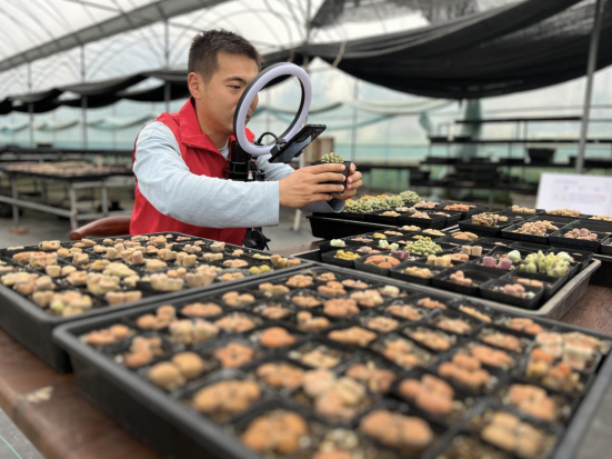 据了解,该基地负责人邹杰瑞是个“90后”,回乡创业10年,专门繁殖生产番杏科生石花系列,成就了自己的“花样人生”。园艺基地每年培育“生石花”超千万颗,在专注多肉品质的同时积极探索电商平台,通过基地直播模式,让生石花搭上“快通车”,开出“致富花”。现如今,杰瑞番杏园艺每年已经实现400多万元的销售额。邹杰瑞表示,接下来将定期开展农业直播培训,帮助周边农户“触网”增收。