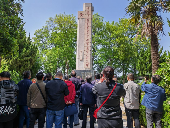 “1930年4月3日,红十四军在贲家巷成立时,总人数超过了3万人。当时贲家巷总共有四口水井,会议当天四口井的水全部都被喝光了……”在江安镇贲家巷中国工农红军第十四军纪念碑前,讲解员生动地介绍着这片红色土地上的历史。