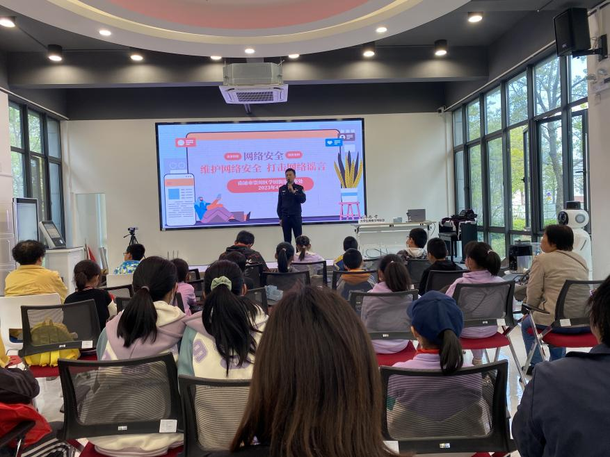 “网络上散布谣言判处五年以下有期徒刑、拘役或者管制;造成严重后果的,处五年以上有期徒刑。”学田派出所教导员刘伍益说道。学田街道通过“网络+网格+警务+公益”课堂,联合学田派出所借助“七彩周末课堂”,以法论事,通过典型实例向孩子们介绍了使用网络时可能存在的安全风险,告诫孩子们要文明上网,提高识谣、辩谣、防谣的网络安全意识。
