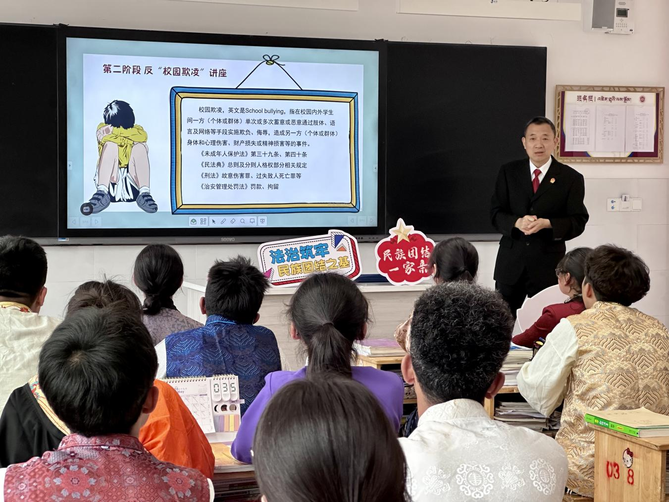 “同学们,大家知道《网络安全法》中和大家息息相关的条例有哪些么?我们可以结合一些具体案例看一看……”崇川区人民法院唐闸法庭庭长严永宏走进南通西藏民族中学开展法治宣传教育活动,这是怡园社区“尚法”和“崇文”两个专属网格在本年度的首次“携手”。