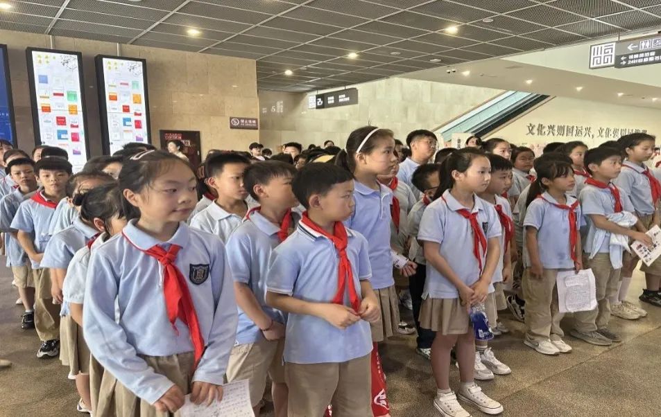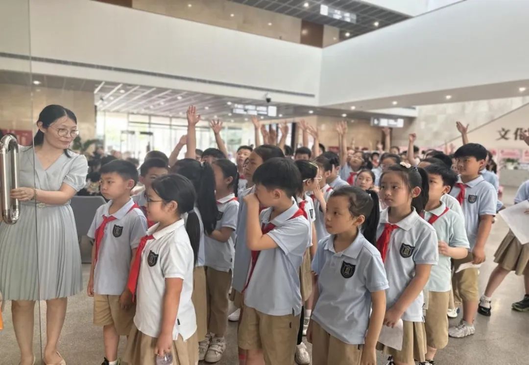 虽然烈日炎炎,但是阻挡不了孩子们对图书馆的憧憬和向往。在家长志愿者的协助下,孩子们排着整齐的队伍,快乐地出发了。
