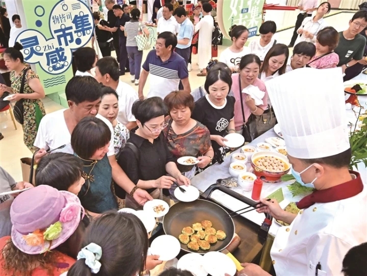 市民在特色产品展位前品尝美食。 记者丁传彬