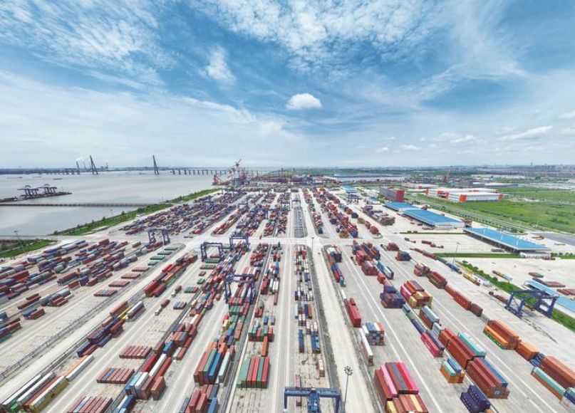 19日拍摄的忙碌的南通港通海港区集装箱作业区。上半年,南通港口完成货物吞吐量16128万吨,同比增长4.9%。其中沿海集装箱吞吐量完成同比增长468.1%,内河集装箱吞吐量完成同比增长39.8%。 记者 许丛军摄