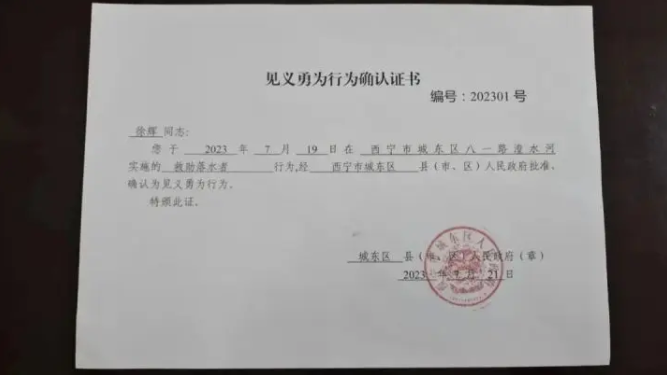 本网讯 昨天,南通市见义勇为基金会收到来自青海西宁的消息,经西宁市城东区政府确认,在当地湟水河勇救落水女子牺牲的徐辉被认定见义勇为。21日,徐辉的遗体回到家乡启东,追悼会将于24日举行。