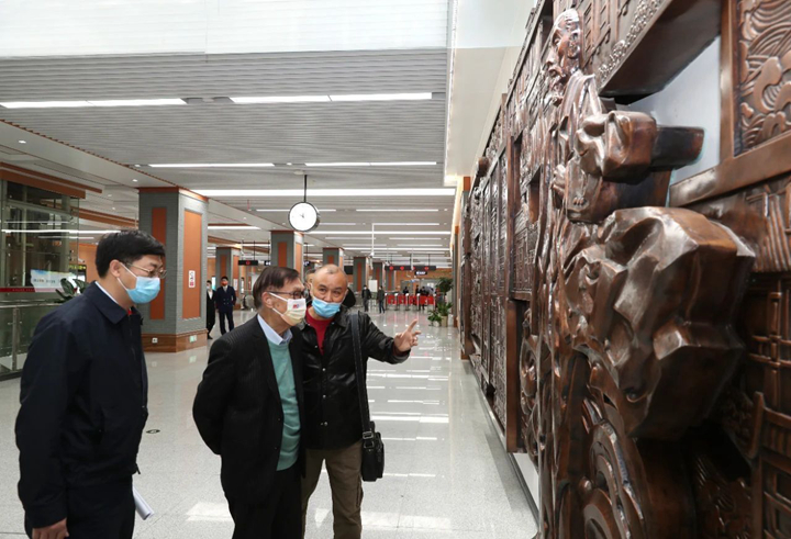 张謇嫡孙张绪武乘坐地铁1号线,参观浮雕作品《先贤伟业》。尤炼 摄