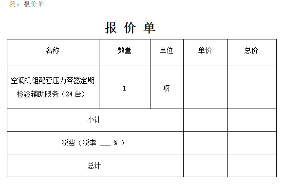 一、采购项目:空调机组配套压力容器定期检验辅助服务项目