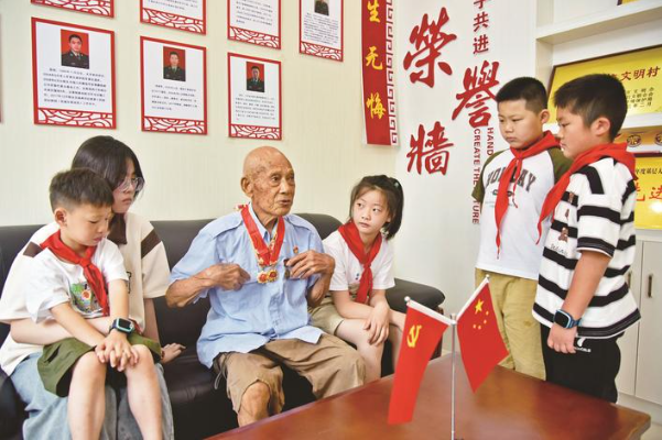 本网讯 (通讯员张永龙 蔡梦玉 记者杨新明)“这一战,拼来了山河无恙、家国安宁,19万多名志愿军将士血洒朝鲜战场,埋骨他乡……”近日,如皋市城北街道狮垛村96岁高龄的抗美援朝老兵陈应太为10多名学生讲述自己当年参加抗美援朝的故事。