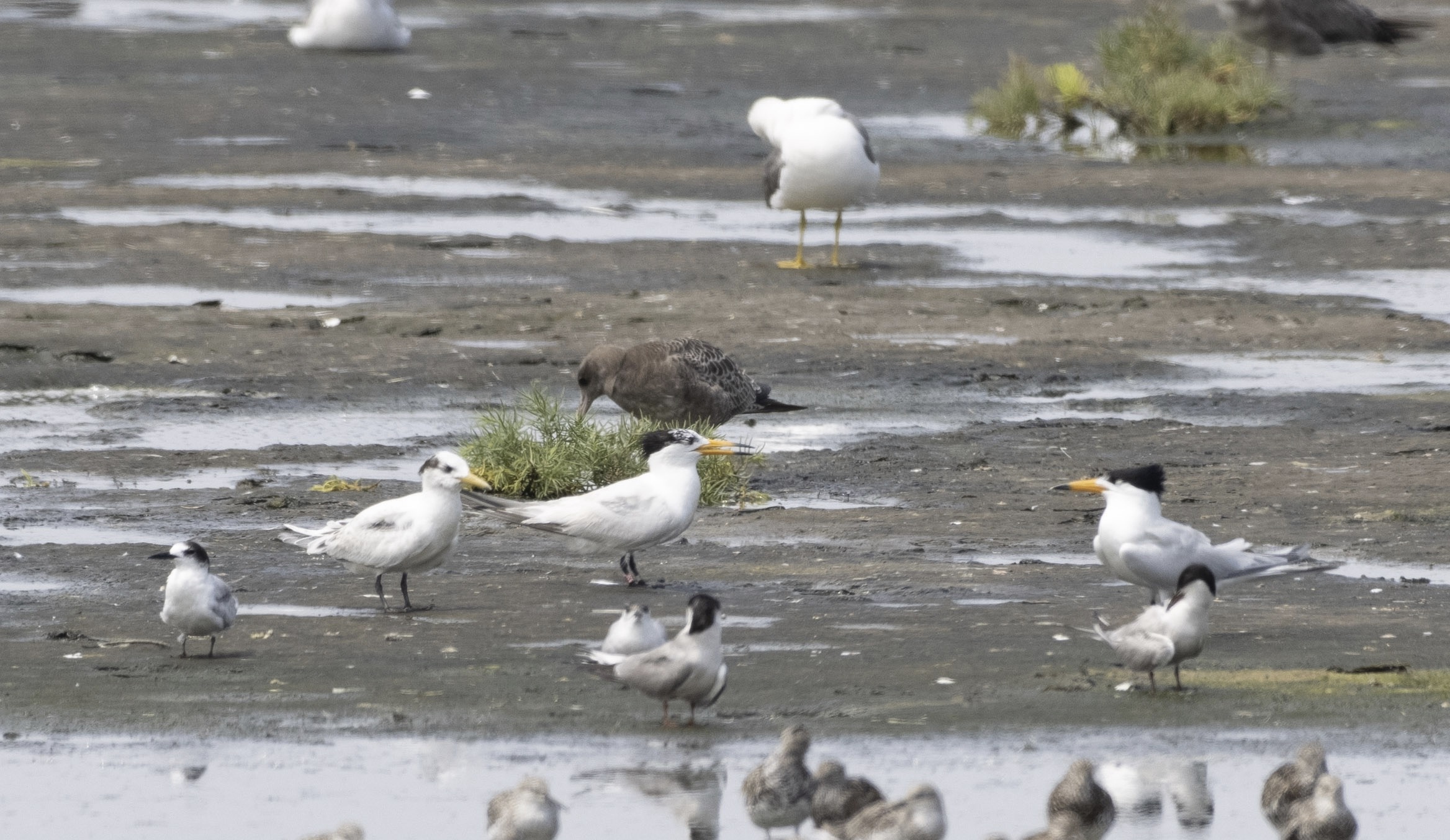 7月20日,“勺嘴鹬在中国”公益组织调查员章麟在南通如东东凌海蜇塘记录到一只成鸟、一只幼鸟共两只中华凤头燕鸥,为今年首次记录。接下来几天,江苏省南通环境监测中心生态观测人员联合观鸟志愿者展开每日跟踪监测,发现通州湾栖息地中华凤头燕鸥种群较为稳定,单日最大记录为9只。