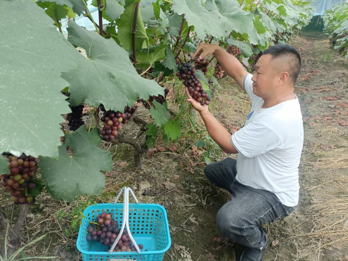 藤蔓之间,正有游客拿着剪刀、提着篮子、穿梭于葡萄架间,乐此不疲。“我是一大早从市区过来的。这里的葡萄皮薄肉后,汁水也多,真得很甜。我摘了不少,打算带给父母朋友们都尝尝。”正在采摘的游客说。