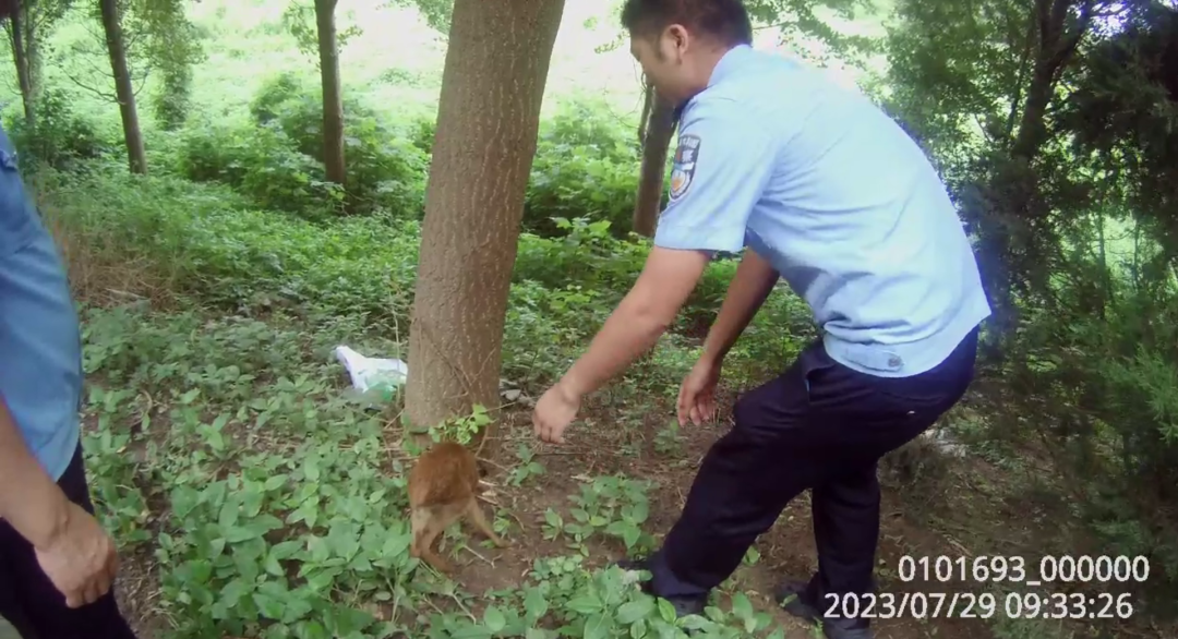 无独有偶,近日,海安市公安局滨海新区派出所接到市民纪先生报警,称其捡到一只疑似麋鹿的野生小动物,不知道该怎么处置,请求民警帮助。
