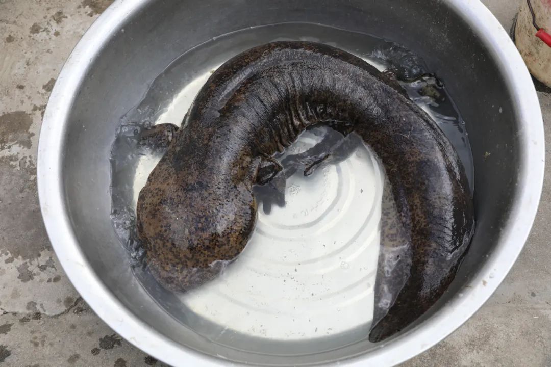 海安市食药环侦大队民警立即联系相关部门协助处置。8月1日上午,农业农村部门派专业人员对村民捕获的“四脚怪鱼”进行了现场鉴定,这条体长100.5厘米,重约8.25公斤,村民所称的“四脚怪鱼”头部扁宽,有前后肢各1对,全身呈灰褐色,系国家二级保护动物大鲵,也称“娃娃鱼”。