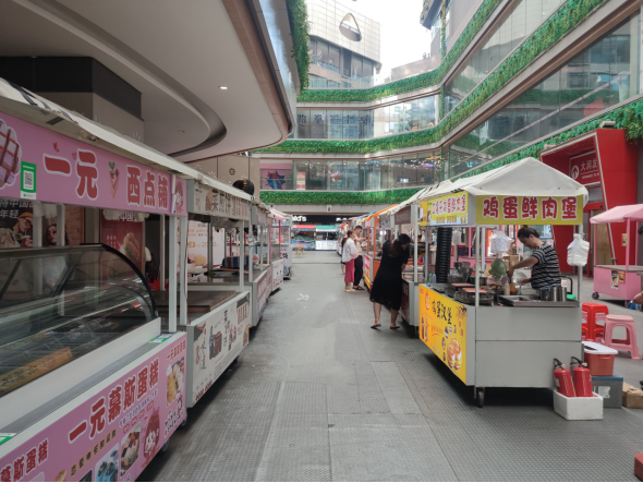 “现在人多,我还专门拓展了新‘业务’,学了新手艺,夏天卖啤酒小龙虾,准确把握市场嘛!”原先卖海鲜烧烤的店主老邱计划和管理方多申请5张桌子的区域用于揽客。