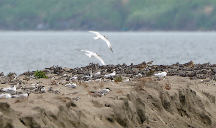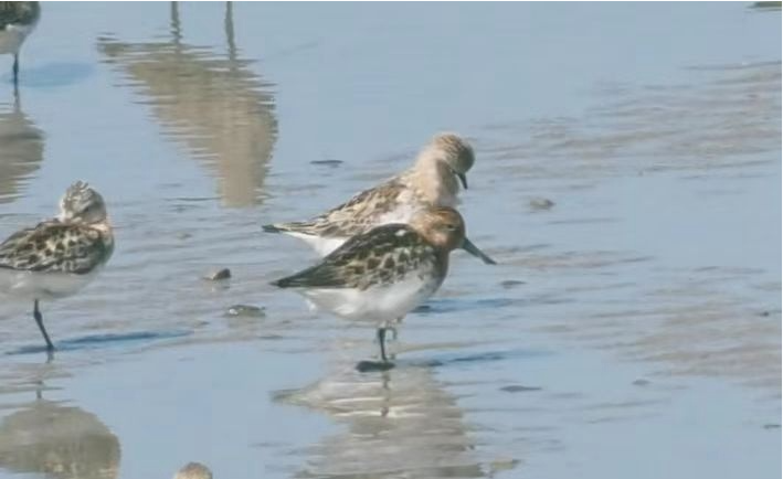 南通绵长的海岸线,丰富的湿地资源为候鸟大迁徙提供了重要的补给。鸟儿在海边翩然起舞,形成“鸟浪”奇观……在如东东凌湿地,观测人员惊喜发现1只红色繁殖羽的勺嘴鹬,这是今年勺嘴鹬在南通的首次南迁记录。勺嘴鹬为国家一级重点保护鸟类,IUCN极危物种,全球种群仅600余只。接下来,勺嘴鹬将会陆续抵达南通沿海,进行休整换羽,11月份继续向南迁徙。现场还观测到1400余只国家一级重点保护鸟类黑嘴鸥和多只小青脚鹬。