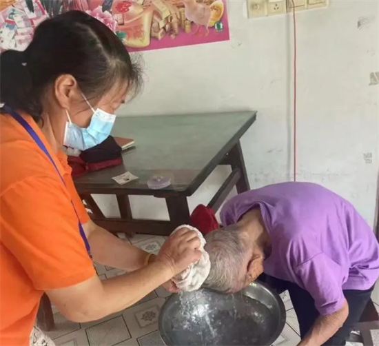 昨日下午3点,两位身穿橘黄色马甲的助老员拎着专业的工具箱,走进三星镇瑞南村87岁的村民陆泽新家中,为他和他的老伴量血压、剪头发、洗头发、洗衣服。“到这边来呢,未说先笑,像自己女儿一样,对我们嘘寒问暖,很感谢她们。”陆泽新对这样的上门服务十分满意。