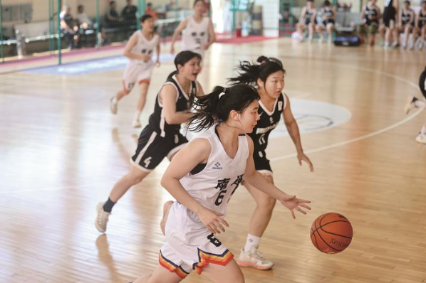 昨天,由省教育厅、省体育局主办的2023年江苏省青少年校园篮球联赛暨中学生篮球锦标赛高中女子组在南京开赛,来自省内9个学校的女子篮球队将展开为期4天的激烈比拼。在首日的比赛中,南通大学附属中学(白色球衣)大比分战胜对手东台市唐洋中学,挺进下一轮。 记者 徐培钦摄