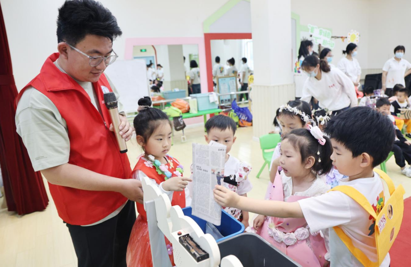 “垃圾切勿随便扔,垃圾分类要牢记。”近日,在狼山镇街道吉的堡幼儿园的小舞台上,伴随着节奏动感的音乐,中(一)班的孩子们穿着用废旧物品手工制作成的环保服装,唱着自己改编的垃圾分类歌谣,上演了一场精彩的环保时装秀。