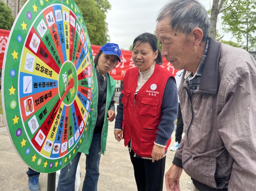 “你还在为可回收物、有害垃圾、餐厨垃圾、其他垃圾傻傻分不清楚?快来参加垃圾分类互动游戏!”今年刚刚建成入住的悦和花园小区休闲广场上,陈桥街道综合行政执法局工作人员、树北村新时代文明实践志愿者正在向路过的小区居民介绍垃圾分类的方法和注意事项。活动现场还设置了“旋转大转盘”“投掷飞行旗”等充满趣味的互动游戏,现场教居民如何进行分拣,帮助在场居民加深印象,更好地将学到的垃圾分类知识实践到生活中。