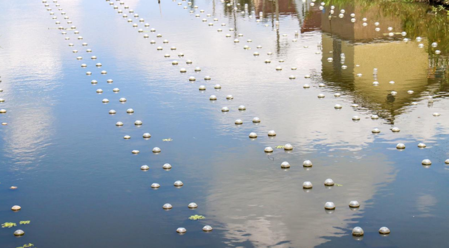 “每个塑料瓶下都连着一个‘钱袋子’,里面‘住’着的就是珍珠蚌。”养殖基地负责人邵小红笑着说,“像这样的养殖区域,在吴窑一共有1400亩,分布在立南河和南横港河两条主要河流上,预计3-5年后能产560万只珍珠。”