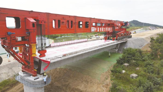 据新华社电 8月27日,在中国铁建大桥局北沿江高铁(新建上海至南京至合肥高速铁路)箱梁架设现场(上图),随着重930吨的箱梁稳稳地架设在合肥肥东南鹰庄特大桥桥墩上,标志着新建沪宁合高铁全线首榀箱梁成功架设,施工进入全线架梁阶段。