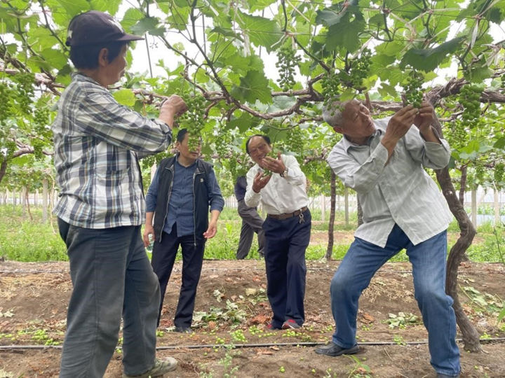 袁大翔一家是本地最早一批葡萄种植户,种植模式较为粗放,在尝到甜头后,他也琢磨着走起了精品路线。今年他将门头换新,准备起遮阳棚,大部分苗都换成了时下热销的阳光玫瑰品种,为了散客们有一个更好的采摘体验。此外,周边几家果农也都开始转型,陆续投入喷灌设备,节水灌溉、省水省肥,一亩地可以减少五个人工成本。