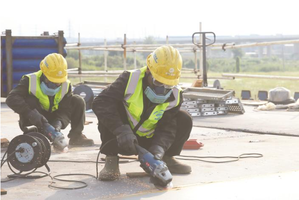 昨天,深南路大桥工程正在施工。深南路大桥衔接平潮片区和崇川区西部,全长775m,工程投资约3.348亿元。目前正在进行主桥钢桁梁拼装、引桥附属结构及路基工程施工,累计完成产值约2.12亿元,计划2024年6月底建成通车。 记者 尤炼摄