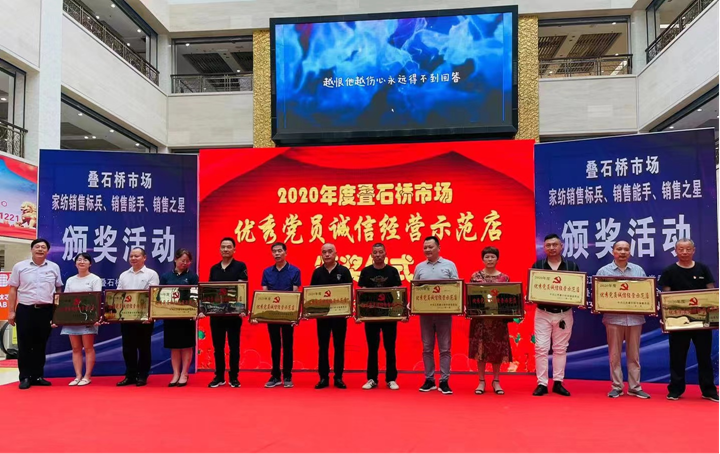 市场充分发挥党员示范户的引领作用,目前已有180家党员商户获评“党员诚信经营店”。在他们的示范带动下,海门叠石桥市场连续数年获评“全国诚信示范市场”,在日前商务部发布的2023年全国“诚信兴商”典型案例名单中,叠石桥市场名列其中,成为南通市唯一获此殊荣的专业市场。不仅如此,叠石桥市场积极推进“一支一品”建设,涌现赛城党委“七彩青春”、心愿家纺党支部“育匠”等众多党建子品牌,将“小个专”党建与振兴家纺产业紧密结合,不断扩大市场的影响力和辐射力,引领市场党建工作整体提升。目前,海门叠石桥家纺市场已经成为引领中国家纺产业发展的重要集群和市场化创新发展的示范基地,2022年线上线下交易总额突破1300亿元。