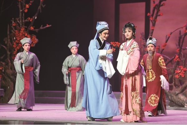23日晚,由宁波市小百花越剧团演出的越剧《追鱼》在更俗剧院上演,演员们用诙谐幽默的方式为观众倾情献演碧波潭边中国式的甜蜜爱情故事。记者徐培钦
