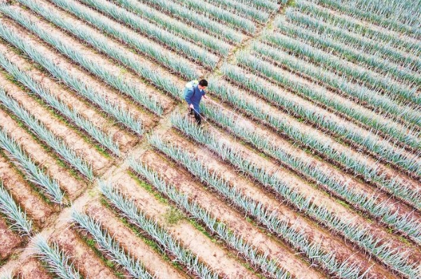 25日,在如皋磨头镇天阳社区香葱种植基地,农民正在喷药防虫作业。今年,磨头镇天阳社区大力调整农业产业结构,因地制宜推进香葱规模化大面积种植,引导农民通过土地流转和务工等形式参与产业发展,在家门口实现就业增收。 吴树建摄