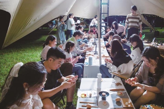 在途居开沙岛露营基地绿色草坪上,天幕帐篷、户外潮集市、动感音乐、浪漫烟花,让人疗愈内心疲惫,重燃生活热情,游客们在此畅享假日的乌托邦。假期累计接待游客2万多人次。