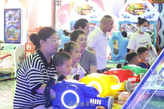 节日期间,通城各大商圈首店活力迸发,吸引了大量市民。位于龙信广场的龙信体育世界,自开业来就一直受到年轻人、家庭消费群体的喜爱。龙信广场市场部经理秦鹏鹏介绍,体育世界占地2万平方米,集合真冰馆、保龄球、射箭馆、棒球馆、童玩等130个娱乐项目,是长三角地区最大的综合性室内游玩体育体验场所。