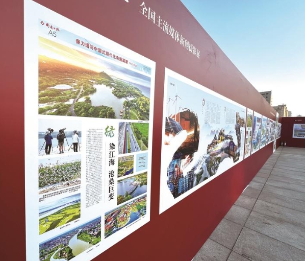 本报选送的版面《绿染江海 沧桑巨变》和本报记者拍摄的《生态修复成效显 军山绿野花海引游人》亮相。本次展览持续至10月29日,免费向观众开放。 记者 许丛军摄