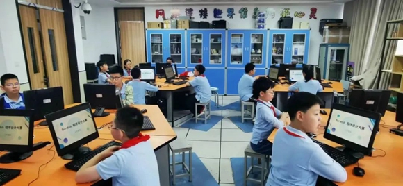 计算机室,六年级的孩子们全神贯注于编程的世界。屏幕上的小车在他们的操作下,沿着既定的路线出发,不同的语句组合在一起,得到了意想不到的效果呈现,自动到达了终点。少年们的创意新奇又有趣,未来的程序设计大师一定会是你们。