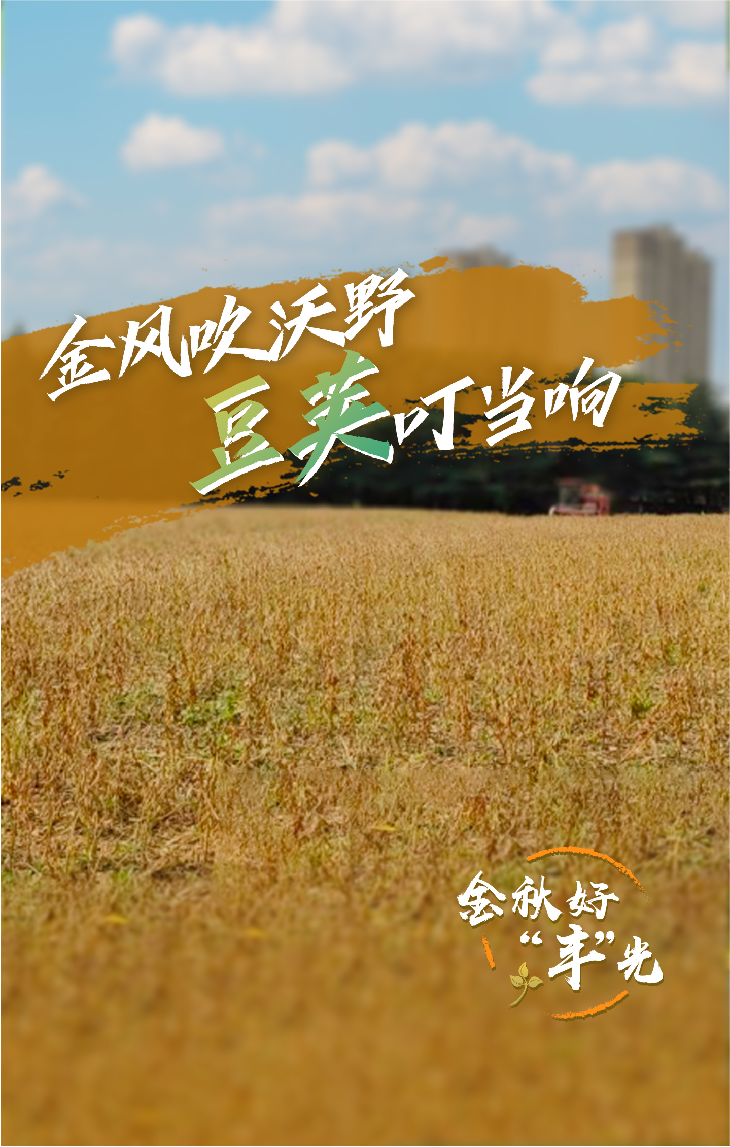 走进文俊村社区乡村振兴大豆种植基地,金黄的豆叶接连成片,粗壮的豆秆上长着一簇簇密实的豆荚,伴随着隆隆的机械声转眼间被收入机器中,收割、切割、脱粒、粉碎等工序一气呵成,田间地头呈现一片繁忙景象。