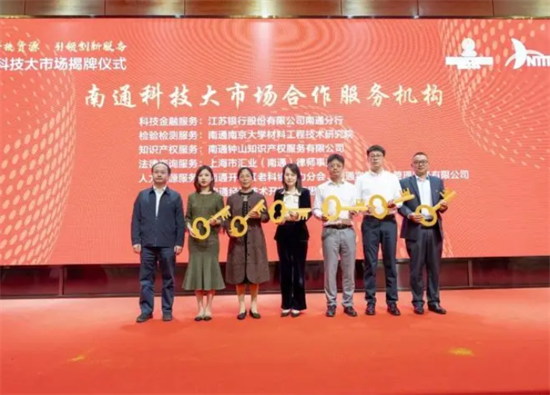 科技服务机构是技术创新系统的重要组成部分。科技大市场揭牌仪式上,南通钟山知识产权服务有限公司、江苏银行股份有限公司南通分行、南通南京大学材料工程技术研究院等6家单位获颁合作服务机构金钥匙。