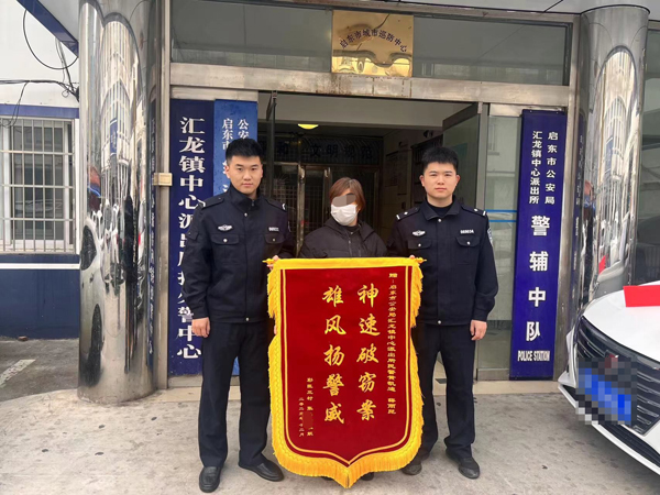 本网报(通讯员 杨舜茜)12月4日,市民张女士向启东市公安局汇龙镇中心派出所送去一面书有“神速破窃案 雄风扬警威”的锦旗,并向办案民警表示衷心感谢。