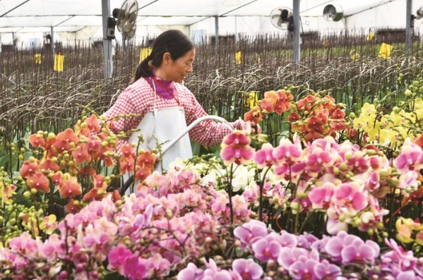 昨天,如皋如城街道大明社区蝴蝶兰种植基地温室大棚内,工人在打理蝴蝶兰。大雪将至,温室大棚内却暖意融融。40多个品种、8万株蝴蝶兰长势良好,正次第进入盛花期,工人们正忙着做好冬季管理工作,集中供应元旦和春节市场。 通讯员 吴树建摄
